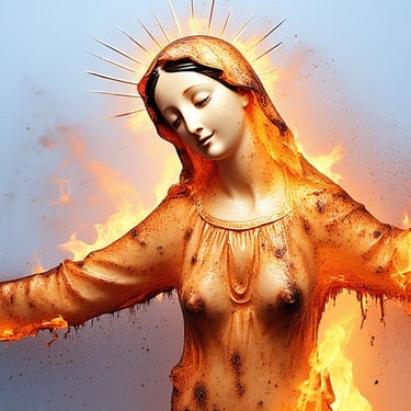 >Note: The use of sacrilegious or provocative imagery featuring the Virgin Mary in this post is intentional and rooted in shock value, not historical accuracy. This collection is meant to jolt the reader into reconsidering how sanitized her story has become. These depictions are not meant to suggest that the actions or scenarios portrayed are factual or reflective of her life—they're artistic disruptions meant to reclaim her image from religious perfection and explore the real human experience she likely endured. That is, if she existed at all. Be sure to check back for updated content featuring newer uploads. Enjoy!